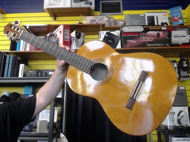 Yamaha C40 classical guitar in good condition, featuring a rich sound and comfortable playability. Ideal for beginners and experienced players alike, perfect for practice or performances. Quality craftsmanship and durable design.
