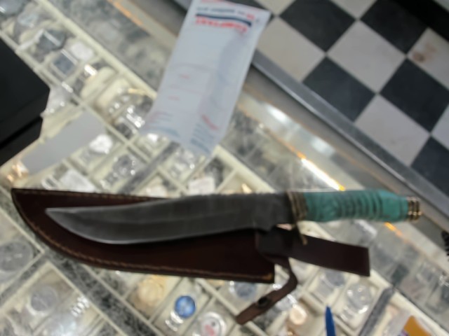Couteau damascus style turquopise