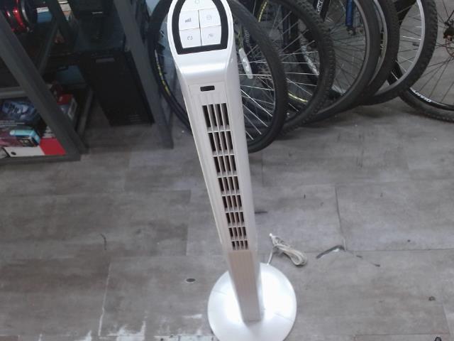The Uberhaus 97585008 is a 46-inch white oscillating tower fan designed for efficient airflow and stylish cooling, perfect for enhancing comfort in any room. Sleek and modern design.