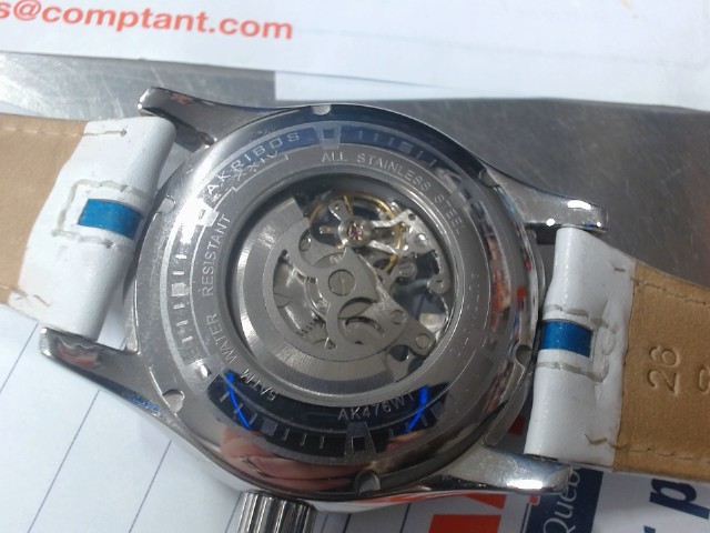 Akribos skeleton watch w/b leather ht-ic