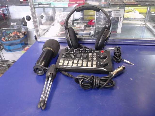 Kit de studio de base avec carte son live, idéal pour les musiciens. Comprend des accessoires indispensables pour enregistrer et produire de la musique de qualité professionnelle facilement.