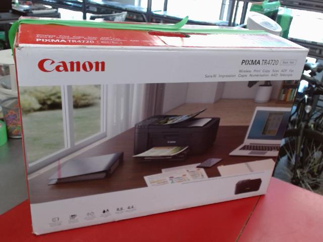 Imprimante Canon TR4720, idéale pour le travail et la maison. Polyvalente avec impression, copie, numérisation et fax. Compacte, elle s'intègre facilement dans tout espace. Boîte comprend tous les accessoires nécessaires.