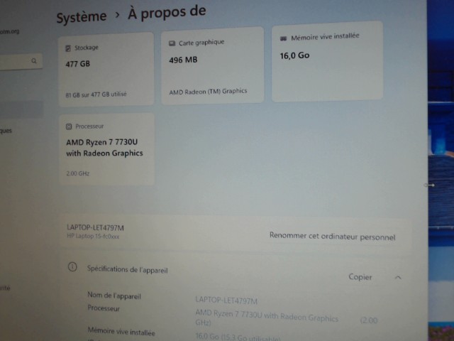 Ordinateur portable HP FC0008CA avec processeur Ryzen, 16 Go de RAM et 512 Go SSD. Performances optimales pour le travail et le divertissement, design élégant et léger.